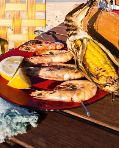 Prawns and corn on the cob are other great ingredients for barbecuing. No need to peel either of them as the shell or husk seals in the flavour and juices.