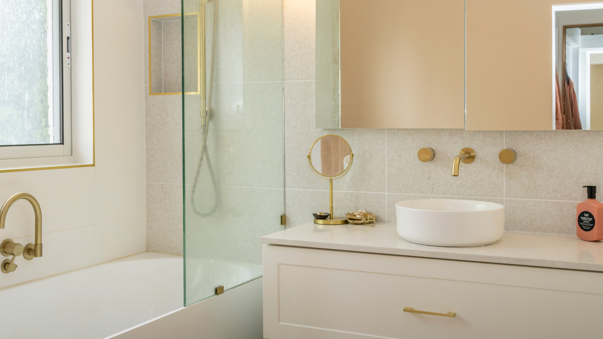 was paint everything white to make it more liveable. The kitchen was the first major reno I’d done, so it was fantastic to have their advice for everything from smart technology appliances like the Whirlpool 6th SENSE oven and fridge to Hafele cabinetry and beautiful marble benchtops and the gorgeous fluted Laminex surrounds. I’ve stuck with the white, but added nude pink touches as that’s my favourite accent colour. I do love all the travel and the fact that I have so much going on, but it’s wonderful to come home to Hobart and the river. Every time I walk into the living spaces, I take a deep breath and relax. It’s truly a place to refuel.”